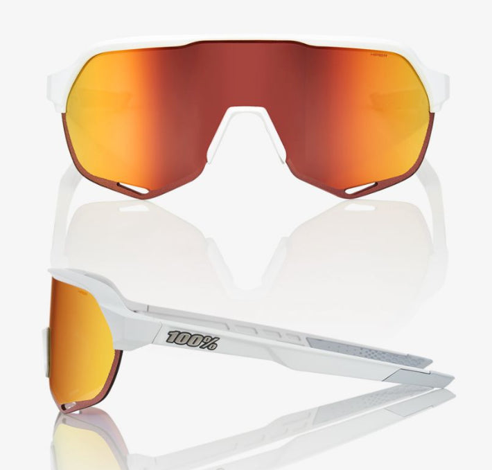100% Percent Cycling S2 Sunglasses - Matte Off White - HiPER Red Multilayer Mirror Lens